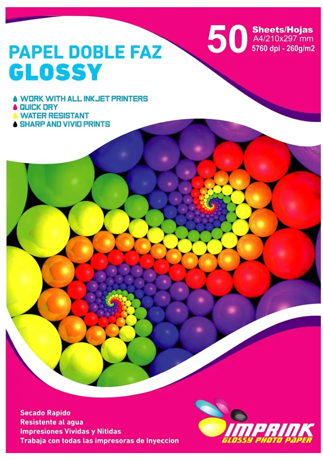 Papel Fotográfico Doble Faz Glossy Brillante A4 260g/50hojas